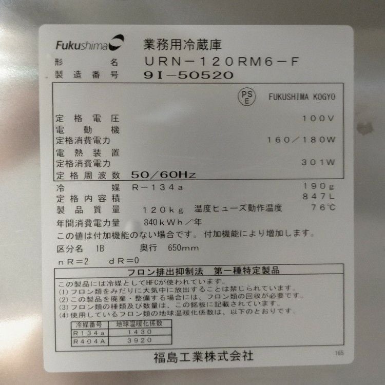 他の画像を見る 2019年製 フクシマガリレイ 縦型冷蔵庫 URN-120RM6-F 東京町田店 中古品 単相100V 定価 ¥ 1,007,600 のところ 販売価格 ¥ 121,000 税込 SOLD OUT W1200xD650xH1950商品ランク:B 詳細を見る お気に入りに登録する