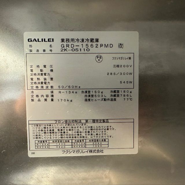他の画像を見る 2022年製 フクシマガリレイ 縦型冷凍冷蔵庫 GRD-1562PMD(改) 東京足立店 中古品 三相200V 定価 ¥ 1,933,800 のところ 販売価格 ¥ 176,000 税込 SOLD OUT W1490xD800xH1950商品ランク:B 詳細を見る お気に入りに登録する