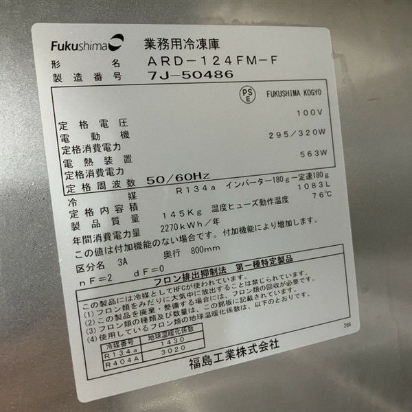 他の画像を見る 2017年製 フクシマガリレイ 縦型冷凍庫 ARD-124FM-F 大阪店 中古品 単相100V 定価 ¥ 1,607,100 のところ 販売価格 ¥ 126,500 税込 SOLD OUT W1200xD800xH1950商品ランク:B 詳細を見る お気に入りに登録する