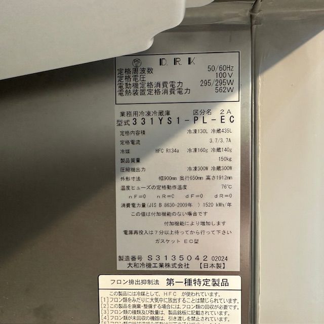 他の画像を見る 2014年製 大和冷機 縦型冷凍冷蔵庫 331YS1-PL-EC 東京足立店 中古品 単相100V 販売価格 ¥ 90,200 税込 SOLD OUT W900xD650xH1912商品ランク:A 詳細を見る お気に入りに登録する