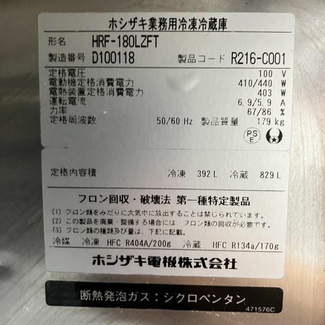 他の画像を見る 2014年製 ホシザキ 縦型冷凍冷蔵庫 HRF-180LZFT 大阪店 中古品 単相100V 定価 ¥ 1,598,300 のところ 販売価格 ¥ 99,000 税込 SOLD OUT W1800xD650xH1890商品ランク:B 詳細を見る お気に入りに登録する