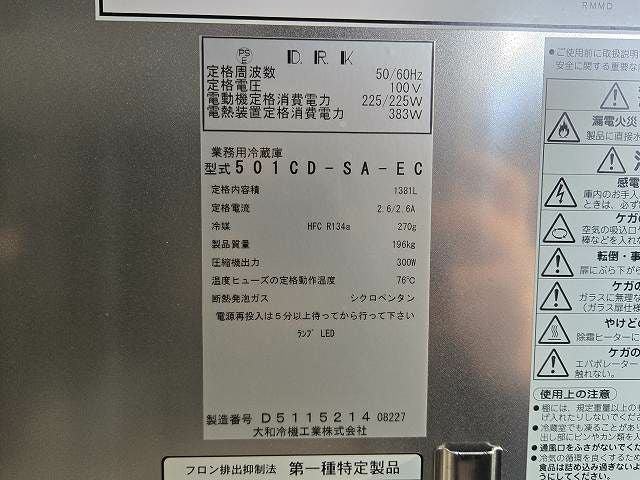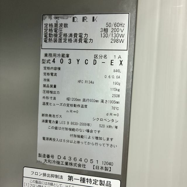 他の画像を見る 2023年製 大和冷機 縦型冷凍冷蔵庫 403YS1-EX 東京町田店 中古品 三相200V 販売価格 ¥ 220,000 税込 W1200xD650xH1905商品ランク:B カートに入れる お気に入りに登録する