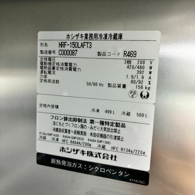 他の画像を見る 2023年製 ホシザキ 縦型冷凍冷蔵庫 HRF-150LAFT3 大阪店 中古品 三相200V 販売価格 ¥ 176,000 税込 W1500xD650xH1910商品ランク:B カートに入れる お気に入りに登録する