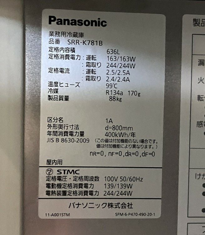 他の画像を見る 2021年製 パナソニック 縦型冷凍庫 SRF-K781B 東京町田店 中古品 単相100V 販売価格 ¥ 143,000 税込 W745xD800xH1950商品ランク:B カートに入れる お気に入りに登録する