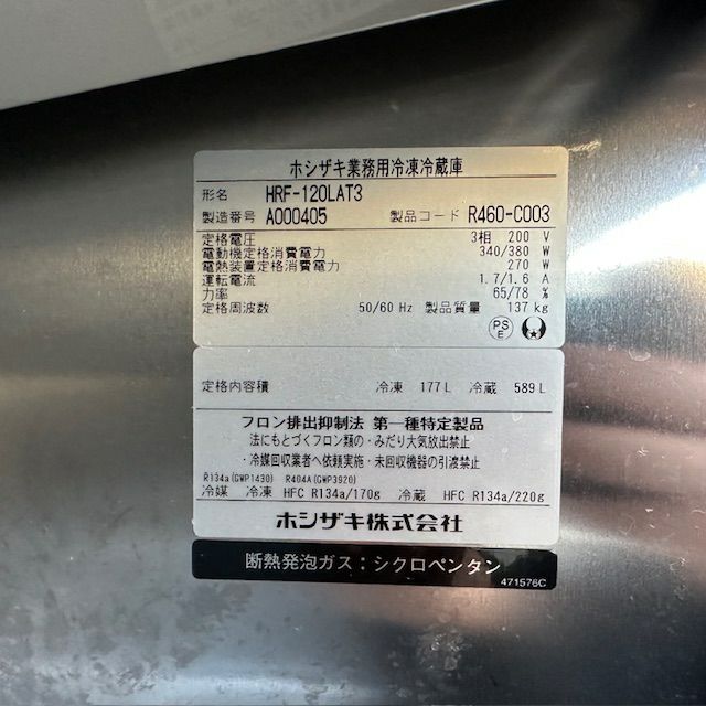 他の画像を見る 2021年製 ホシザキ 縦型冷凍冷蔵庫 HRF-120LAT3 東京足立店 中古品 三相200V 販売価格 ¥ 169,400 税込 W1200xD650xH1910商品ランク:B カートに入れる お気に入りに登録する