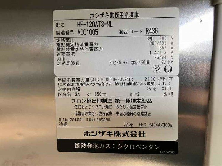 他の画像を見る 2021年製 ホシザキ 縦型冷凍庫 HF-120AT3-ML 愛知店 中古品 三相200V 定価 ¥ 1,545,500 のところ 販売価格 ¥ 209,000 税込 W1200xD650xH1910商品ランク:B カートに入れる お気に入りに登録する