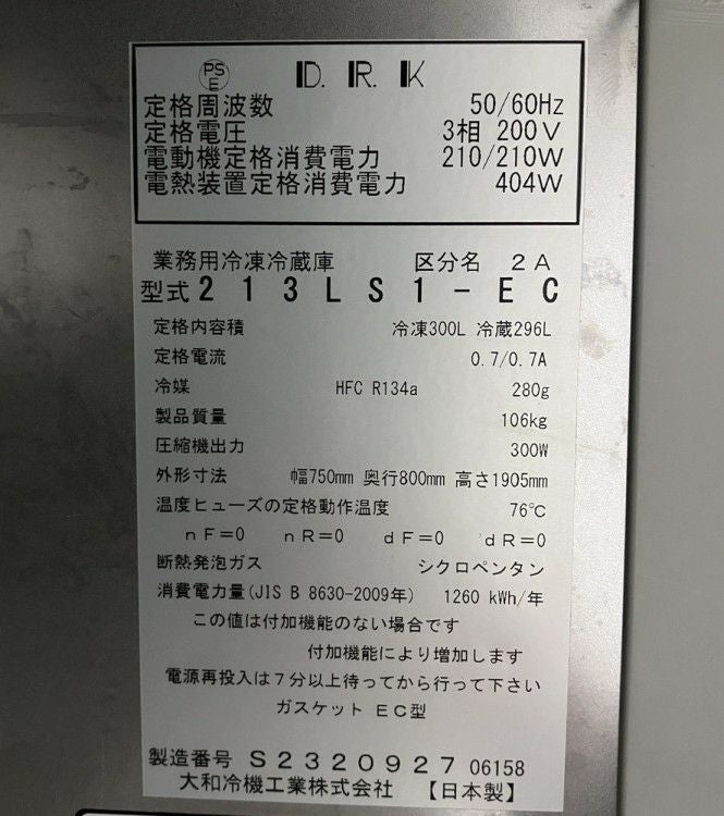 他の画像を見る 2018年製 大和冷機 縦型冷凍冷蔵庫 213LS1-EC 東京町田店 中古品 三相200V 販売価格 ¥ 126,500 税込 W750xD800xH1905商品ランク:B カートに入れる お気に入りに登録する