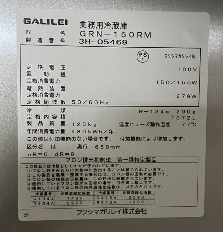 他の画像を見る 2023年製 フクシマガリレイ 縦型冷蔵庫 GRN-150RM 東京町田店 中古品 単相100V 販売価格 ¥ 247,500 税込 W1490xD650xH1950商品ランク:A カートに入れる お気に入りに登録する