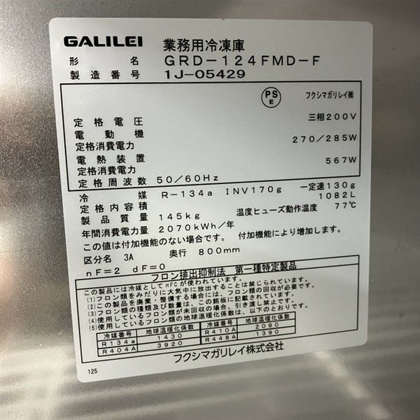 他の画像を見る 2021年製 フクシマガリレイ 縦型冷凍庫 GRD-124FMD-F 大阪店 中古品 三相200V 定価 ¥ 1,696,200 のところ 販売価格 ¥ 193,600 税込 W1200xD800xH1950商品ランク:B カートに入れる お気に入りに登録する