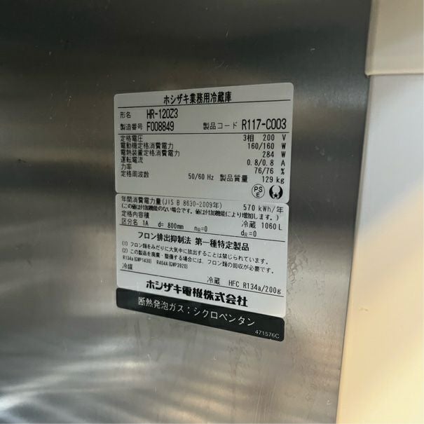 他の画像を見る 2016年製 ホシザキ 縦型冷蔵庫 HR-120Z3 東京足立店 中古品 三相200V 定価 ¥ 1,170,400 のところ 販売価格 ¥ 105,600 税込 W1200xD800xH1890商品ランク:B カートに入れる お気に入りに登録する
