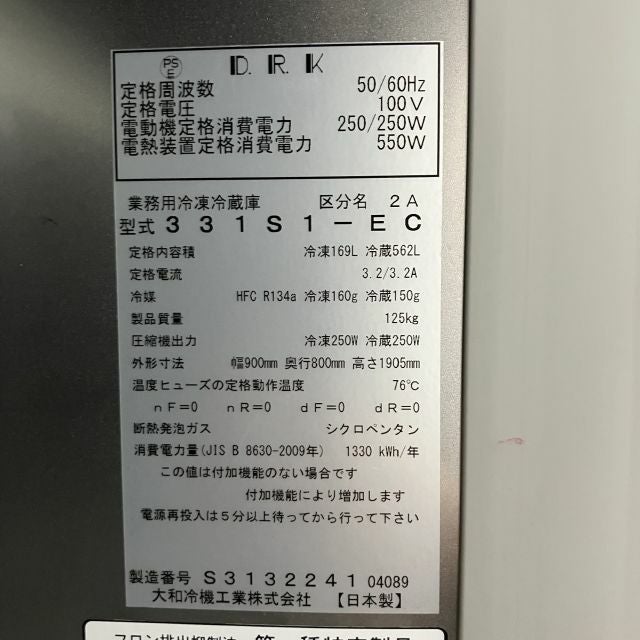 他の画像を見る 2019年製 大和冷機 縦型冷凍冷蔵庫 331S1-EC 大阪店 中古品 単相100V 販売価格 ¥ 154,000 税込 W900xD800xH1905商品ランク:B カートに入れる お気に入りに登録する