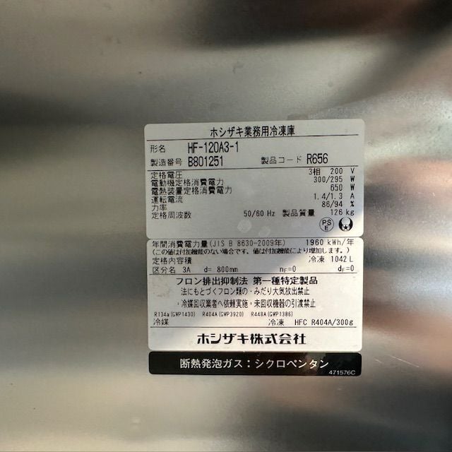 他の画像を見る 2022年製 ホシザキ 縦型冷凍庫 HF-120A3-1 東京足立店 中古品 三相200V 定価 ¥ 1,767,700 のところ 販売価格 ¥ 176,000 税込 W1200xD800xH1910商品ランク:B カートに入れる お気に入りに登録する