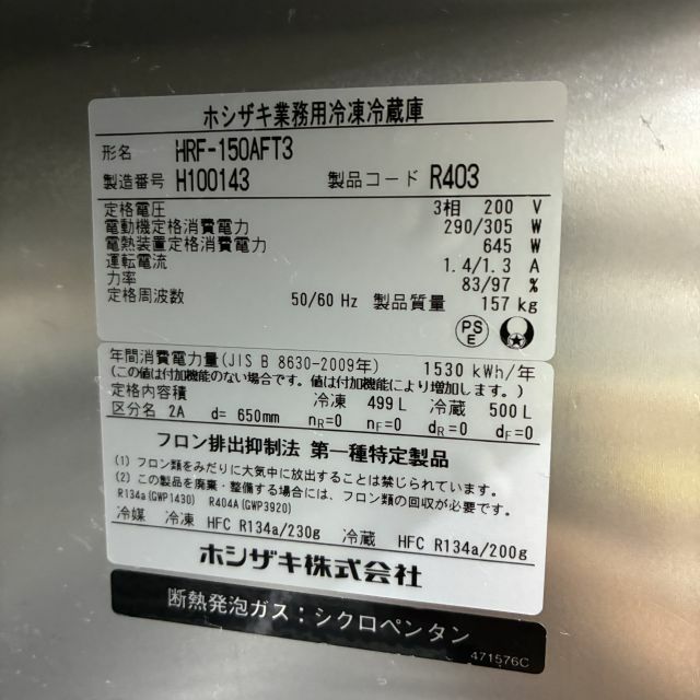 他の画像を見る 2018年製 ホシザキ 縦型冷凍冷蔵庫 HRF-150AFT3 大阪店 中古品 三相200V 定価 ¥ 1,677,500 のところ 販売価格 ¥ 148,500 税込 W1500xD650xH1910商品ランク:B カートに入れる お気に入りに登録する