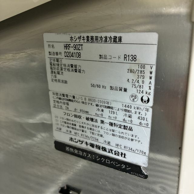 他の画像を見る 2014年製 ホシザキ 縦型冷凍冷蔵庫 HRF-90ZT 大阪店 中古品 単相100V 定価 ¥ 1,221,000 のところ 販売価格 ¥ 88,000 税込 W900xD650xH1890商品ランク:B カートに入れる お気に入りに登録する