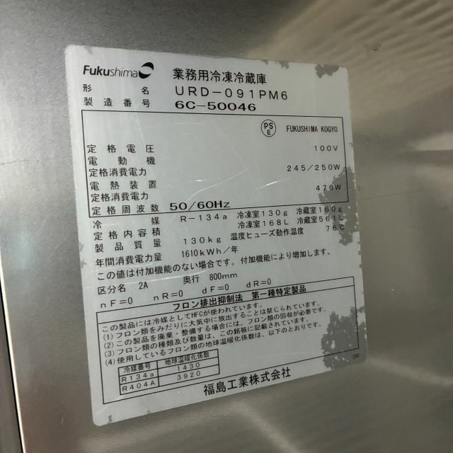他の画像を見る 2016年製 フクシマガリレイ 縦型冷凍冷蔵庫 URD-091PM6 大阪店 中古品 単相100V 販売価格 ¥ 99,000 税込 W900xD800xH1950商品ランク:B カートに入れる お気に入りに登録する
