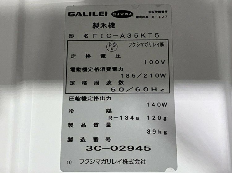 他の画像を見る 2019年製 フクシマガリレイ 95kg製氷機 FIC-A95KT2 大阪店 中古品 単相100V 定価 ¥ 1,061,500 のところ 販売価格 ¥ 198,000 税込 W1000xD600xH800商品ランク:B カートに入れる お気に入りに登録する