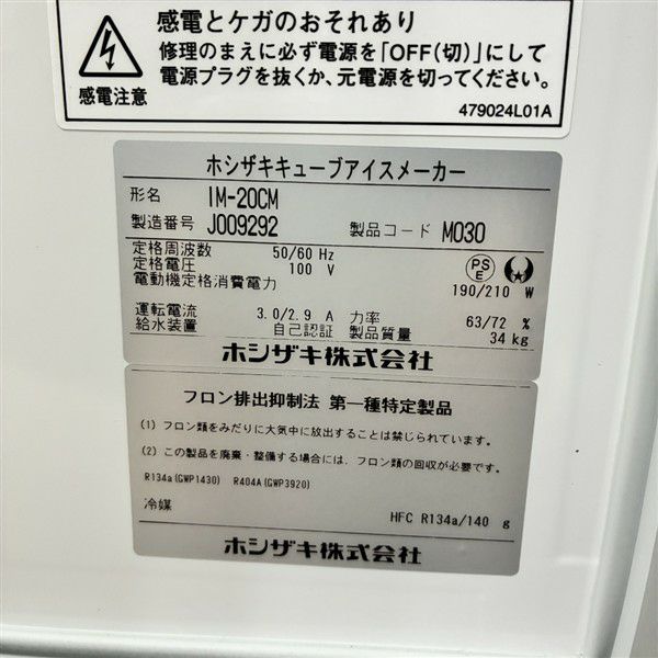 他の画像を見る 2019年製 ホシザキ 20kg製氷機 IM-20CM 大阪店 中古品 単相100V 定価 ¥ 402,600 のところ 販売価格 ¥ 101,200 税込 W450xD450xH630商品ランク:B カートに入れる お気に入りに登録する