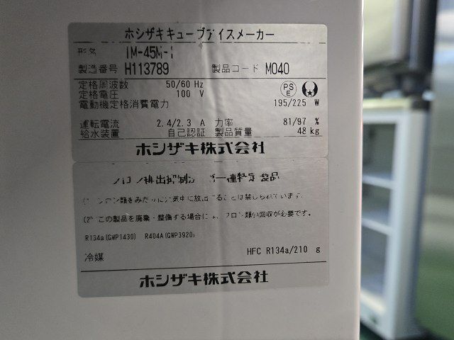 他の画像を見る 2007年製 ホシザキ 35kg製氷機 IM-35M ※備考欄必読 愛知店 中古品 単相100V 販売価格 ¥ 77,000 税込 W500xD450xH800商品ランク:C カートに入れる お気に入りに登録する