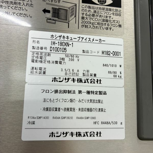 他の画像を見る 2024年製 ホシザキ 180kg製氷機 IM-180XN-1 大阪店 中古品 三相200V 販売価格 ¥ 297,000 税込 W1085xD810xH1870商品ランク:B カートに入れる お気に入りに登録する