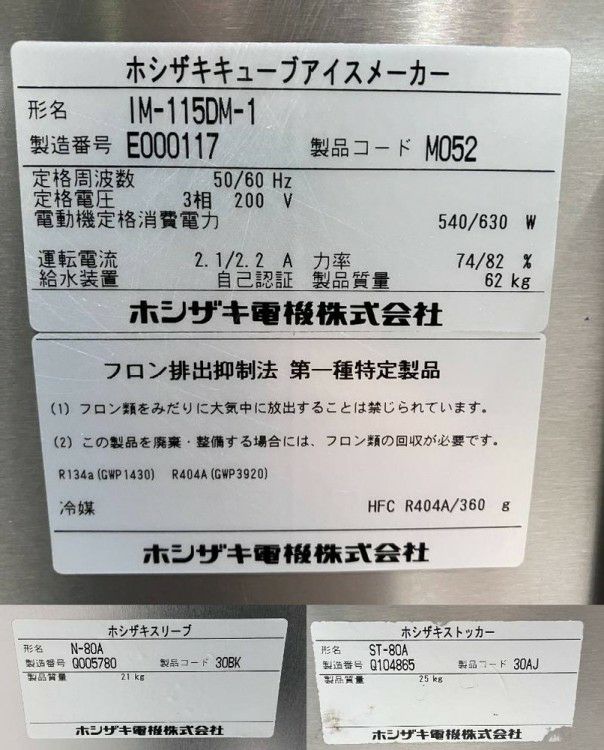 他の画像を見る 2016年製 ホシザキ 水冷式115kg製氷機 IM-115DWM-1-ST 大阪店 中古品 三相200V 定価 ¥ 1,465,200 のところ 販売価格 ¥ 148,500 税込 W930xD545xH1040商品ランク:B カートに入れる お気に入りに登録する