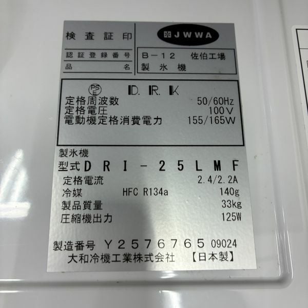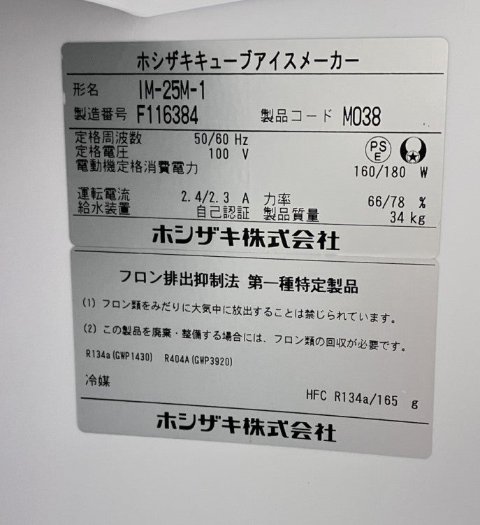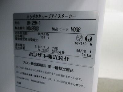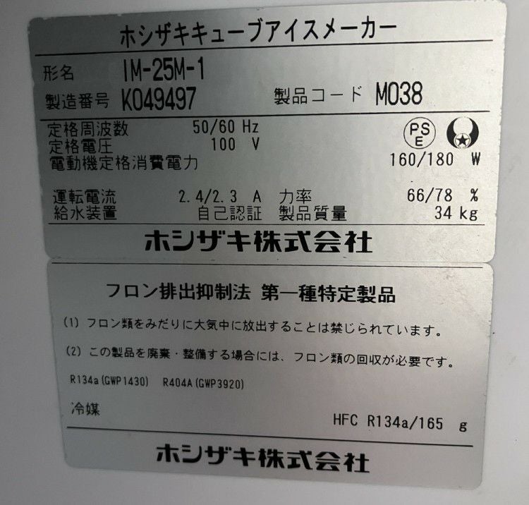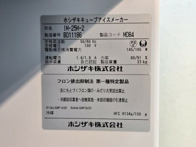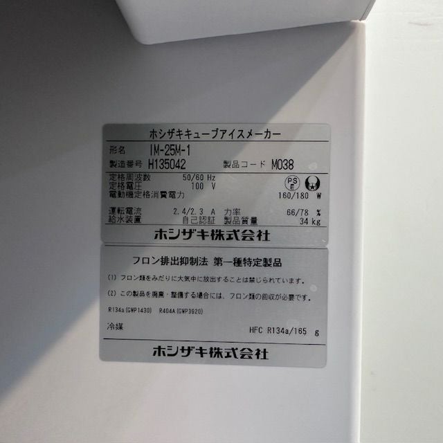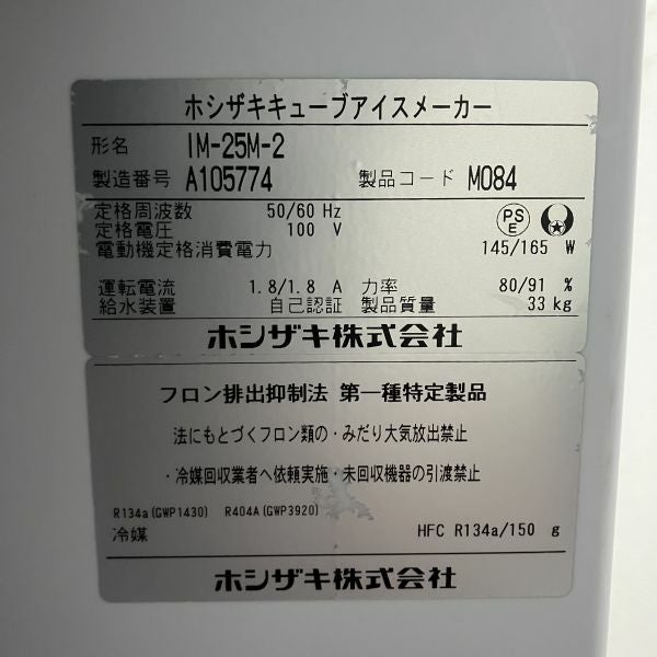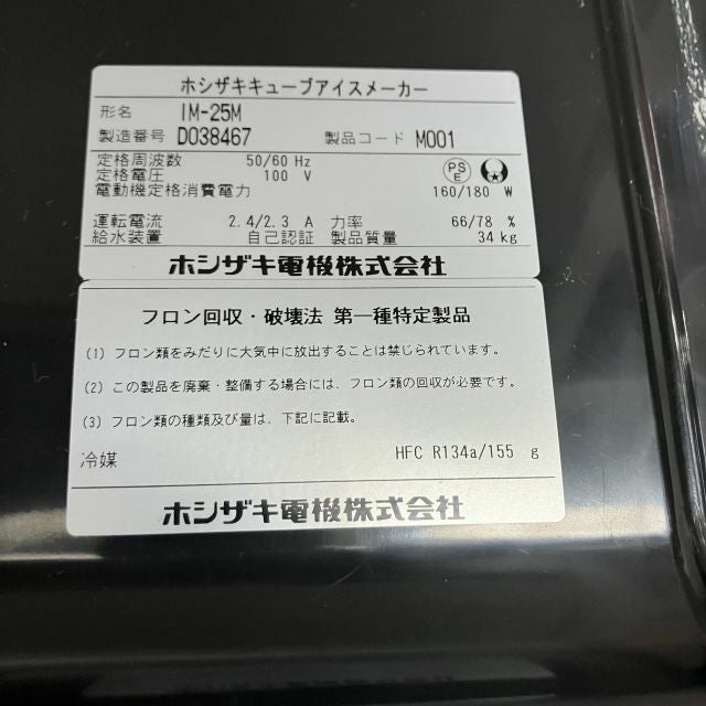 2025年製 ホシザキ 25kg製氷機 IM-25M-2