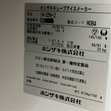 他の画像を見る 2021年製 ホシザキ 25kg製氷機 IM-25M-2 東京町田店 中古品 単相100V 販売価格 ¥ 132,000 税込 SOLD OUT W395xD450xH770商品ランク:A 詳細を見る お気に入りに登録する
