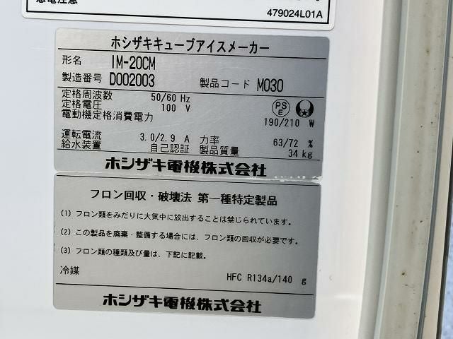 他の画像を見る 2015年製 ホシザキ 20kg製氷機 IM-20CM 大阪店 中古品 単相100V 定価 ¥ 402,600 のところ 販売価格 ¥ 70,400 税込 SOLD OUT W450xD450xH630商品ランク:B 詳細を見る お気に入りに登録する