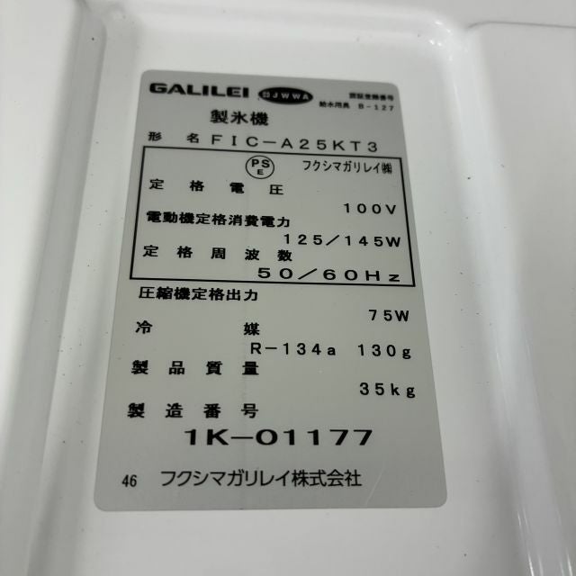 他の画像を見る 2021年製 フクシマガリレイ 25kg製氷機 FIC-A25KT3 大阪店 中古品 単相100V 定価 ¥ 453,200 のところ 販売価格 ¥ 121,000 税込 SOLD OUT W398xD450xH800商品ランク:B 詳細を見る お気に入りに登録する