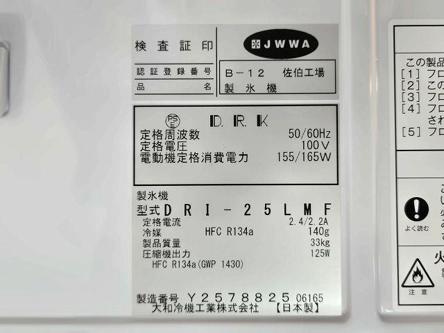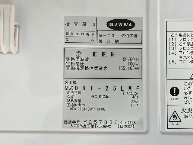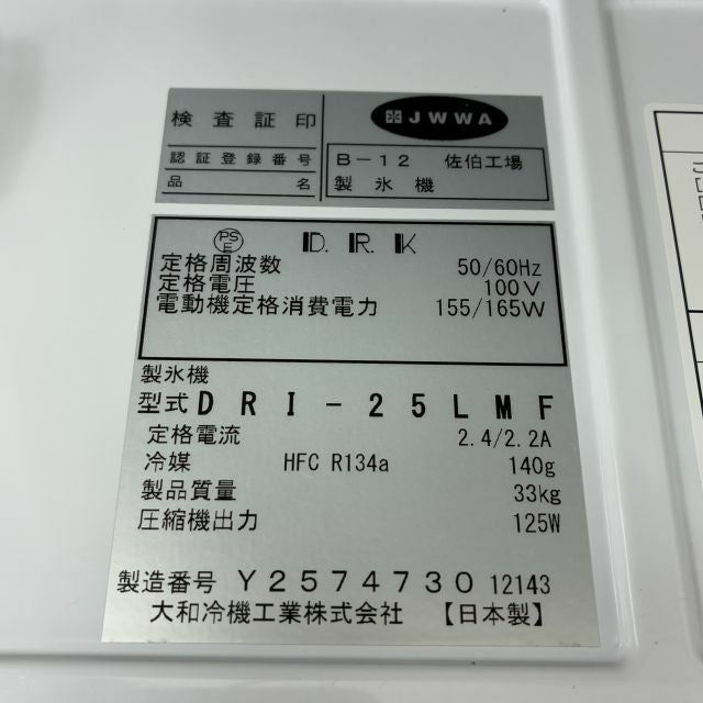 他の画像を見る 2021年製 大和冷機 25kg製氷機 DRI-25LMF 東京町田店 中古品 単相100V 販売価格 ¥ 129,800 税込 SOLD OUT W395xD450xH770商品ランク:B 詳細を見る お気に入りに登録する