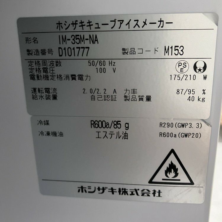2024年製 ホシザキ 35kg製氷機 IM-35M-NA