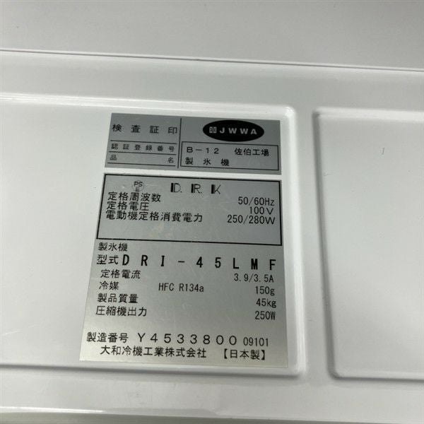 他の画像を見る 2022年製 大和冷機 45kg製氷機 DRI-45LMF 東京足立店 中古品 単相100V 販売価格 ¥ 199,100 税込 W630xD450xH800商品ランク:A カートに入れる お気に入りに登録する