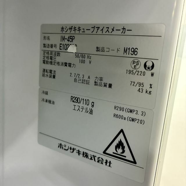 他の画像を見る 2025年製 ホシザキ 45kg製氷機 IM-45P 大阪店 未使用品 単相100V 定価 ¥ 921,800 のところ 販売価格 ¥ 308,000 税込 W630xD450xH800商品ランク:AA カートに入れる お気に入りに登録する