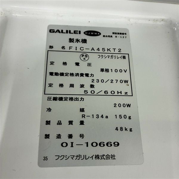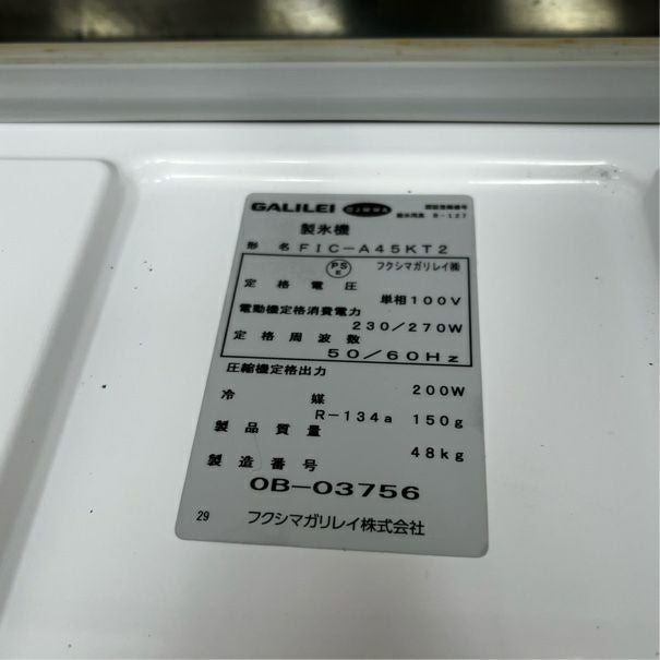 他の画像を見る 2020年製 フクシマガリレイ 45kg製氷機 FIC-A45KT2 東京足立店 中古品 単相100V 定価 ¥ 739,200 のところ 販売価格 ¥ 159,500 税込 W630xD450xH800商品ランク:C カートに入れる お気に入りに登録する