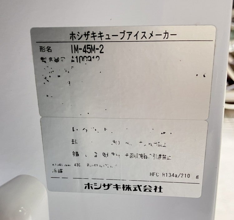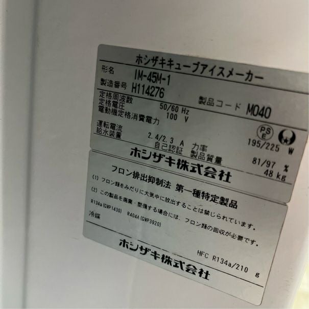 他の画像を見る 2021年製 ホシザキ 45kg製氷機 IM-45M-2 東京町田店 中古品 単相100V 販売価格 ¥ 231,000 税込 W630xD450xH800商品ランク:B カートに入れる お気に入りに登録する