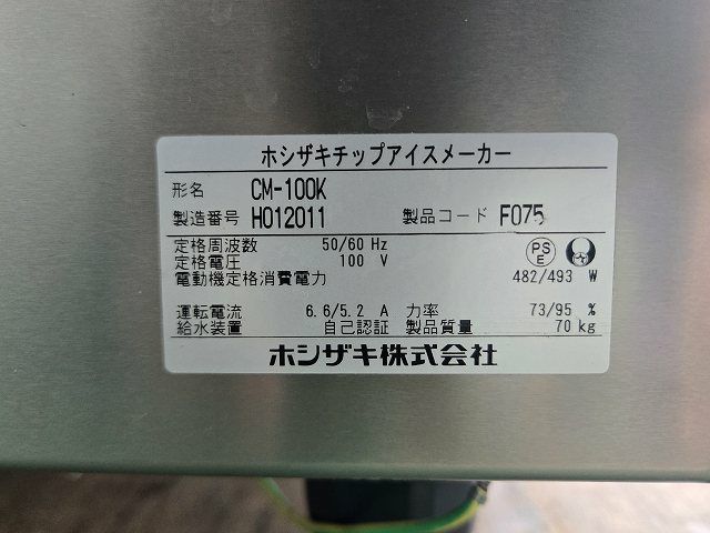 他の画像を見る 2018年製 ホシザキ 100kgチップアイスメーカー CM-100K ※備考欄必読 愛知店 中古品 単相100V 定価 ¥ 1,199,000 のところ 販売価格 ¥ 165,000 税込 W600xD600xH800商品ランク:B カートに入れる お気に入りに登録する