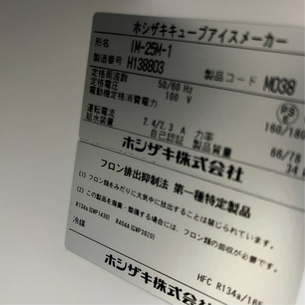 他の画像を見る 2018年製 ホシザキ 25kg製氷機 IM-25M-1 東京足立店 中古品 単相100V 定価 ¥ 445,500 のところ 販売価格 ¥ 108,900 税込 SOLD OUT W395xD450xH770商品ランク:A 詳細を見る お気に入りに登録する