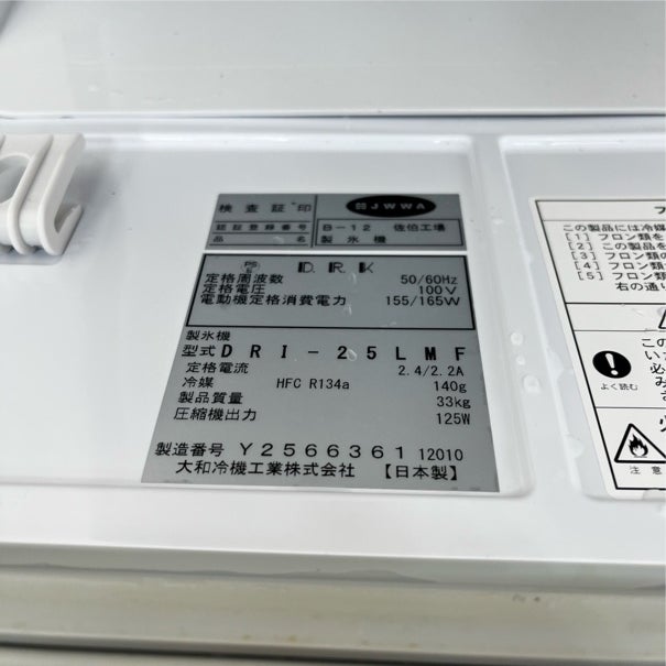 他の画像を見る 2022年製 大和冷機 25kg製氷機 DRI-25LMF 大阪店 中古品 単相100V 販売価格 ¥ 139,700 税込 SOLD OUT W395xD450xH770商品ランク:B 詳細を見る お気に入りに登録する