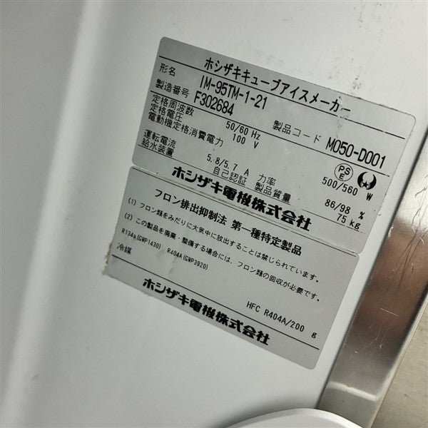 他の画像を見る 2016年製 ホシザキ 95kg製氷機 IM-95TM-1 大阪店 中古品 単相100V 定価 ¥ 1,302,400 のところ 販売価格 ¥ 170,500 税込 SOLD OUT W1000xD600xH800商品ランク:B 詳細を見る お気に入りに登録する