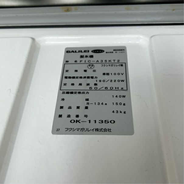 他の画像を見る 2014年製 フクシマガリレイ 35kg製氷機 FIC-A35KT 愛知店 中古品 単相100V 定価 ¥ 586,300 のところ 販売価格 ¥ 110,000 税込 SOLD OUT W500xD450xH800商品ランク:B 詳細を見る お気に入りに登録する