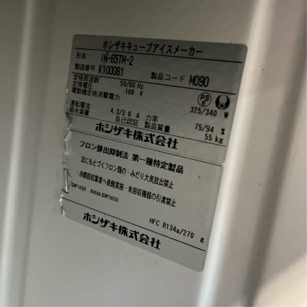 他の画像を見る 2013年製 ホシザキ 25kg製氷機 IM-25M 大阪店 中古品 単相100V 定価 ¥ 445,500 のところ 販売価格 ¥ 80,300 税込 SOLD OUT W395xD450xH770商品ランク:B 詳細を見る お気に入りに登録する