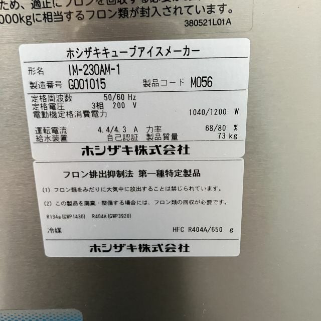 他の画像を見る 2017年製 ホシザキ 230kg製氷機 IM-230AM-1-SA 大阪店 中古品 三相200V 定価 ¥ 1,754,500 のところ 販売価格 ¥ 192,500 税込 SOLD OUT W700xD790xH1850商品ランク:B 詳細を見る お気に入りに登録する