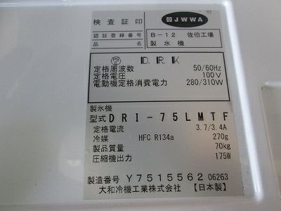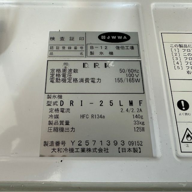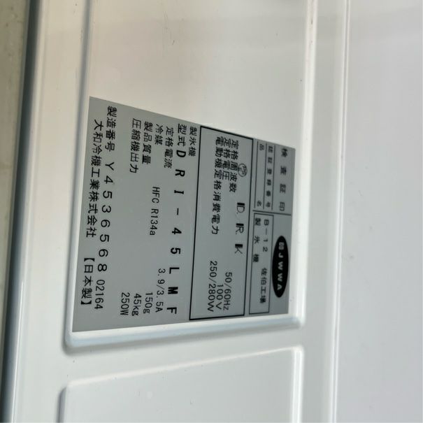 他の画像を見る 2022年製 大和冷機 25kg製氷機 DRI-25LMF 東京足立店 中古品 単相100V 販売価格 ¥ 134,200 税込 SOLD OUT W395xD450xH770商品ランク:A 詳細を見る お気に入りに登録する