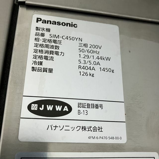 他の画像を見る 2019年製 パナソニック 450kgチップアイスメーカー SIM-C450YN 大阪店 中古品 三相200V 販売価格 ¥ 275,000 税込 SOLD OUT W1080xD870xH1950商品ランク:B 詳細を見る お気に入りに登録する
