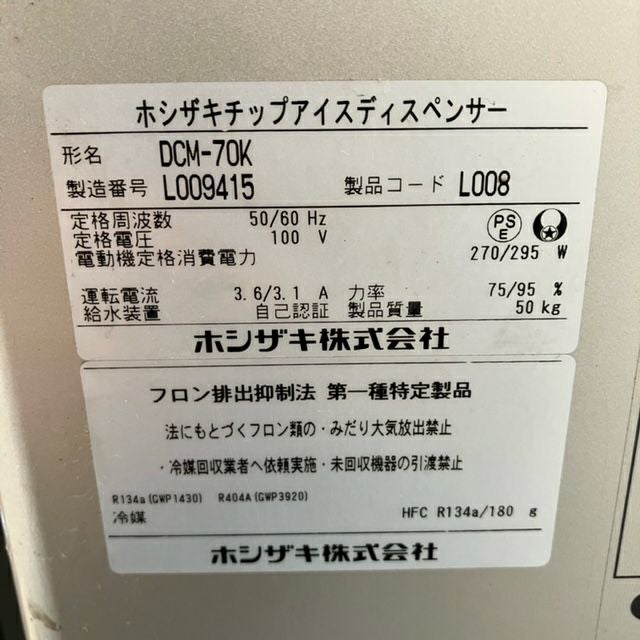 他の画像を見る ホシザキ 100kgチップアイスメーカー CM-100K 東京足立店 中古品 単相100V 定価 ¥ 1,141,800 のところ 販売価格 ¥ 110,000 税込 SOLD OUT W600xD600xH800商品ランク:C 詳細を見る お気に入りに登録する