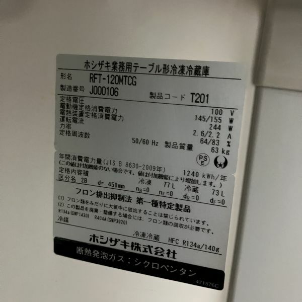 他の画像を見る 2019年製 ホシザキ 冷凍冷蔵コールドテーブル RFT-120MTCG 東京町田店 中古品 単相100V 定価 ¥ 823,900 のところ 販売価格 ¥ 143,000 税込 SOLD OUT W1200xD450xH800商品ランク:B 詳細を見る お気に入りに登録する