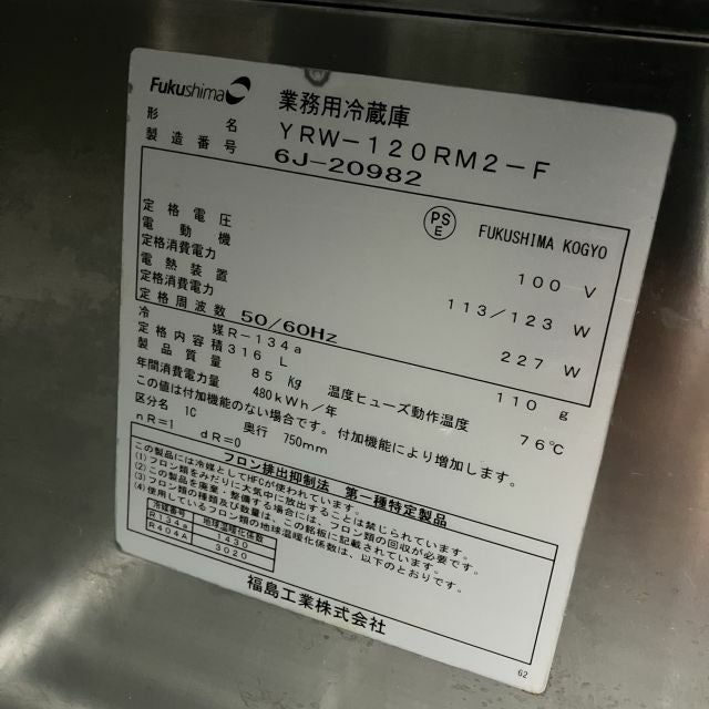 他の画像を見る 2016年製 フクシマガリレイ 冷蔵コールドテーブル YRW-120RM2-F 大阪店 中古品 単相100V 定価 ¥ 830,500 のところ 販売価格 ¥ 70,400 税込 SOLD OUT W1200xD750xH800商品ランク:B 詳細を見る お気に入りに登録する