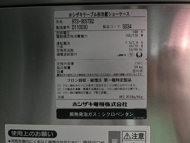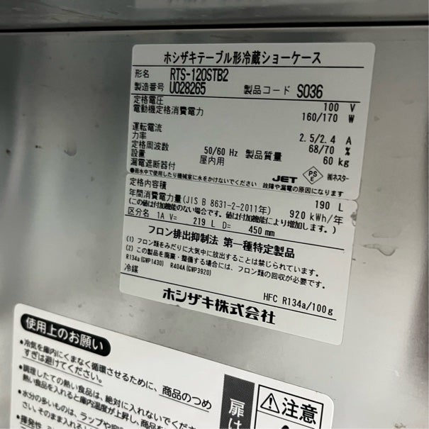 他の画像を見る 2019年製 ホシザキ テーブル形冷蔵ショーケース RTS-120STB2 東京足立店 中古品 単相100V 定価 ¥ 284,900 のところ 販売価格 ¥ 88,000 税込 W1200xD450xH800商品ランク:A カートに入れる お気に入りに登録する