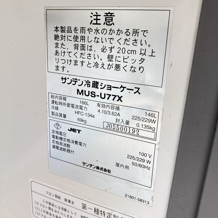 他の画像を見る 2021年製 サンデン 冷蔵ショーケース MUS-0611X 東京足立店 中古品 単相100V 定価 ¥ 269,500 のところ 販売価格 ¥ 68,200 税込 W600xD450xH1100商品ランク:B カートに入れる お気に入りに登録する