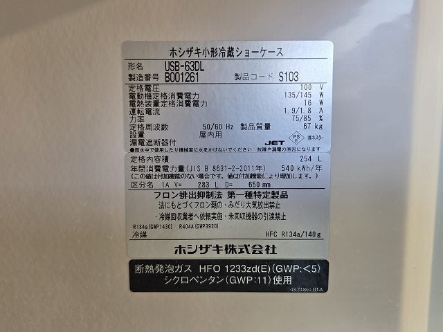 他の画像を見る 2022年製 ホシザキ 冷蔵ショーケース USB-63DL 愛知店 中古品 単相100V 定価 ¥ 412,500 のところ 販売価格 ¥ 110,000 税込 W630xD650xH1520商品ランク:B カートに入れる お気に入りに登録する
