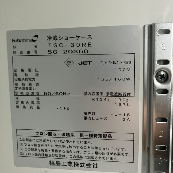 2015年製 フクシマガリレイ テーブル形冷蔵ショーケース TGC-30RE